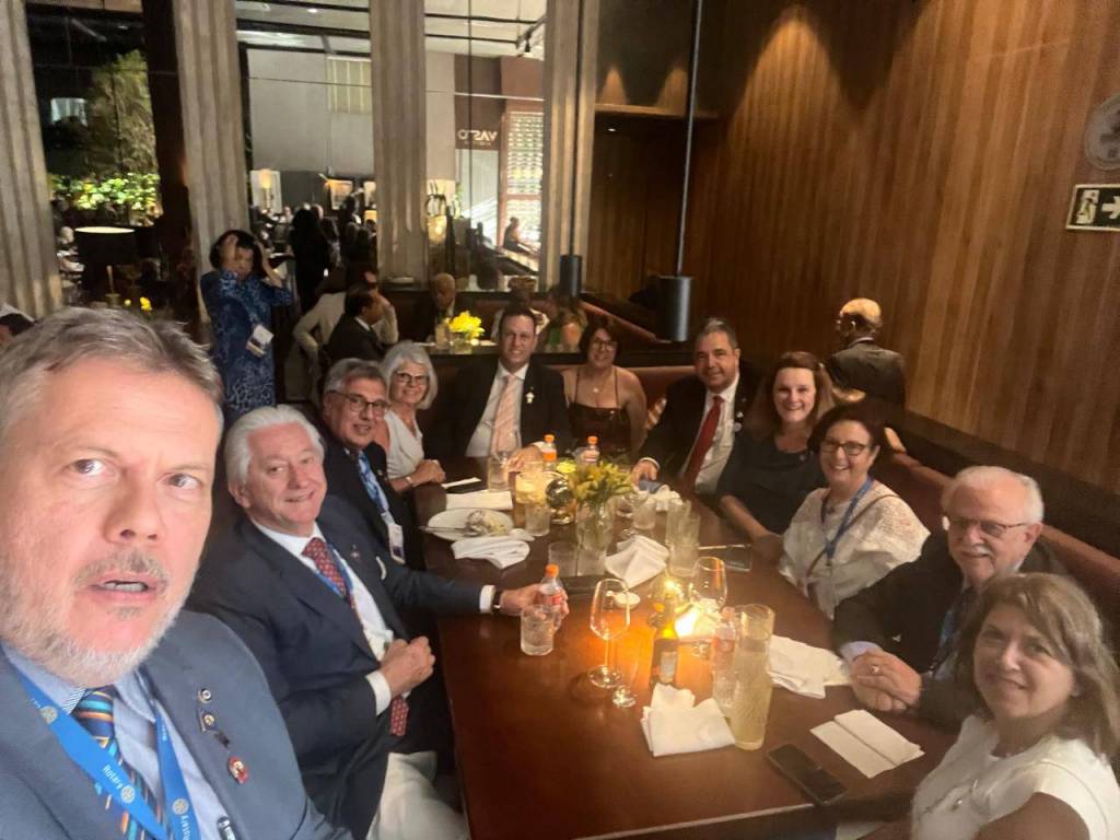 Companheiros Mauricio Pillon Spadine e Alessandra Dematei participando do Instituto Rotary Brasil realizado nos dias 28 a 31/08/2024 na cidade de Fortaleza-CE, no almoço companheiros Major Donnors e Paul Harris Society. Com a Presidente de RI Sthefanie Urchick, o curador da Fundação Rotaria Dennis Shore e o Diretor de RI Henrique Vasconcelos. Na companhia do Colegio de Governadores do D-4590