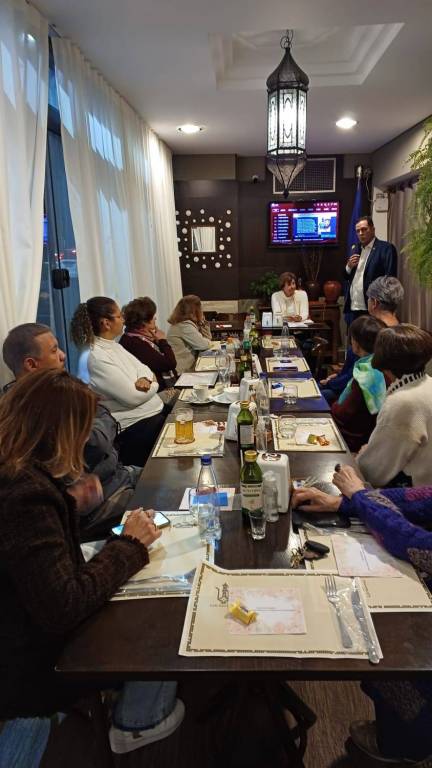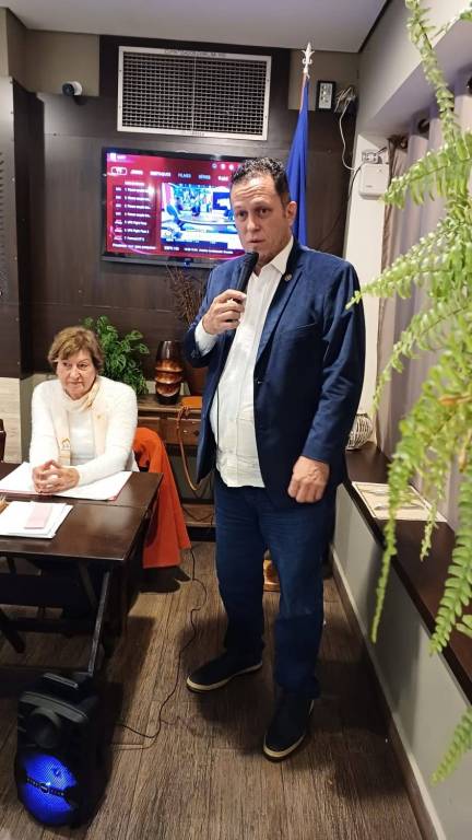 Associados do clube , se unem para apoiar as Senhoras da Casa da Amizade, participando da sua primeira reunião do ano rotario 2025-26, o Governador Assistente Mauricio Pillon Spadine, fala da importancia do trabalho de euipe, entre os clubes e tambem faz uma informação rotaria.