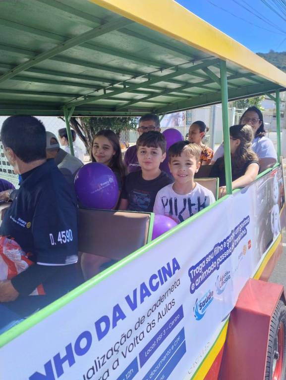 Campanha realizada em parceria com a Secretaria de Saude do Municipio, onde o Rotary, fez todo a divulgação com cartazes, faixas e panfletos, ajudou efetivamente no dia com a triagem das crianças, bem como com a distribuição de pirulitos e balões e tambem contratou o trenzinho para levar as crianças passear, depois de vacinadas.