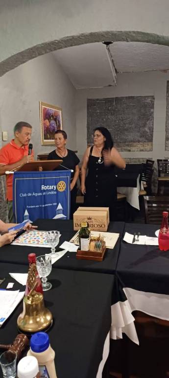 Reunião ordinaria e festiva, o Presidente da posse a duas novas associadas Cleusa e Karina, tambem tivemos a posse de 04 novos associados do Interact, Kadu, Sofia, Clara e Heloisa.